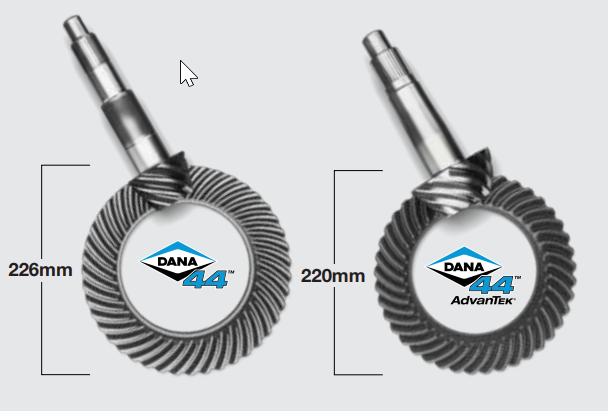 - The Spicer® gearing used in today's Dana 44™ AdvanTEK® axles have a smaller, more durable 220mm ring gear.